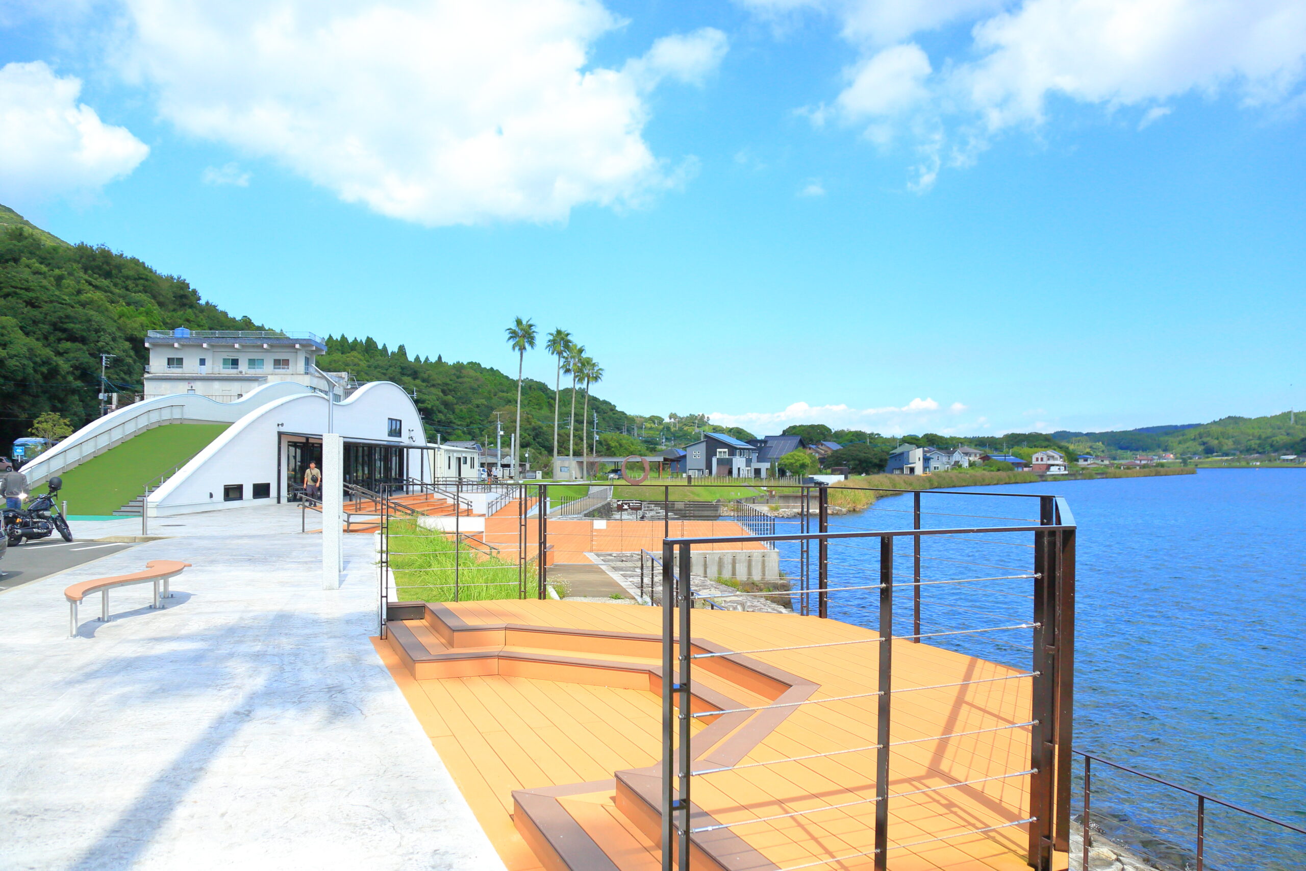 九州最大の湖「池田湖」のほとりにある施設。中には、鹿児島でベーカリーを展開する「ベッカライダンケン」が提案するコーヒーショップが入っています。また、外には水上デッキや芝生広場もあり、池田湖や開聞岳を眺めながらゆったりとした時間を過ごすことができます。 -
