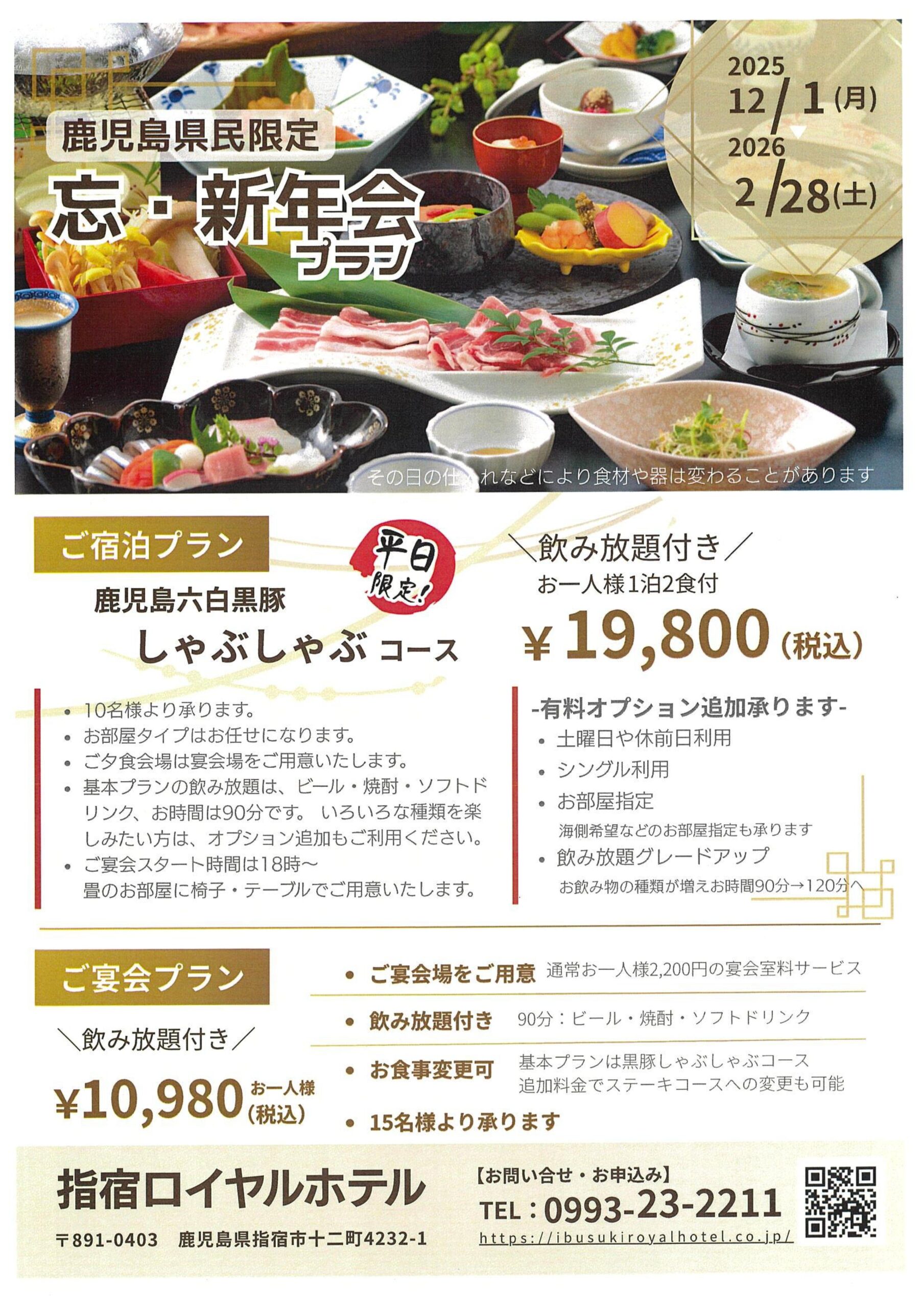 地元食材を味わいながら、一年の締めくくりや新年の集まりを温泉地・指宿で過ごしてみてはいかがでしょうか。開催期間は2025年12月1日から2026年2月28日までです。