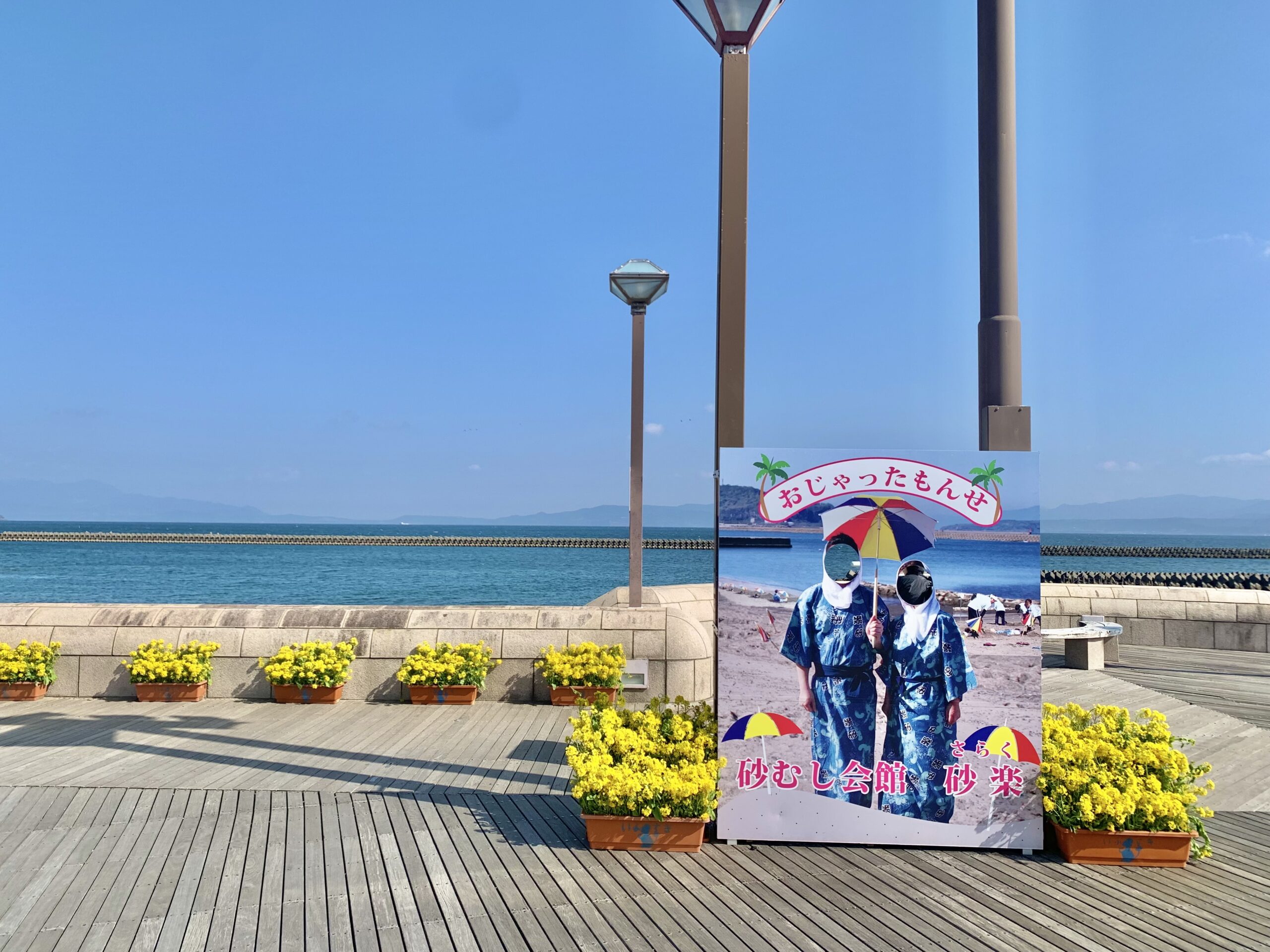 2月より、指宿砂むし会館「砂楽」では「指宿砂むし温泉と旬の味覚満喫キャンペーン」 の一環として、ご来館の記念に楽しんでいただける 撮影ブース を設置しています。
